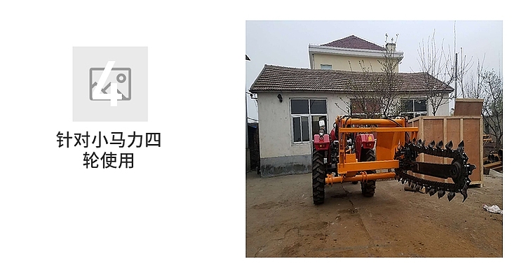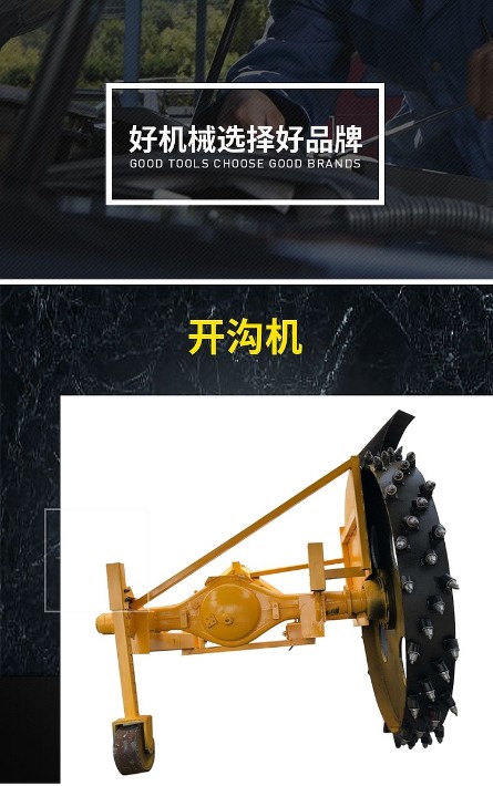 3.與拖拉機(jī)配套使用,能適應(yīng)不同土壤作業(yè),不用時(shí)可去掉不影響拖拉機(jī)其它使用。地面開溝機(jī),路沿石開溝機(jī)。