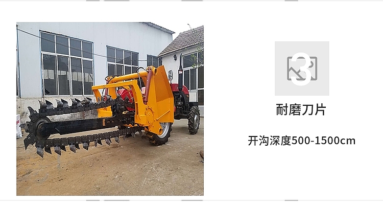 開溝速度每小時(shí)可達(dá)100—300米。所開溝形溝直、壁陡,溝深和溝寬統(tǒng)一,人工和挖掘機(jī)無法開出此溝形。
