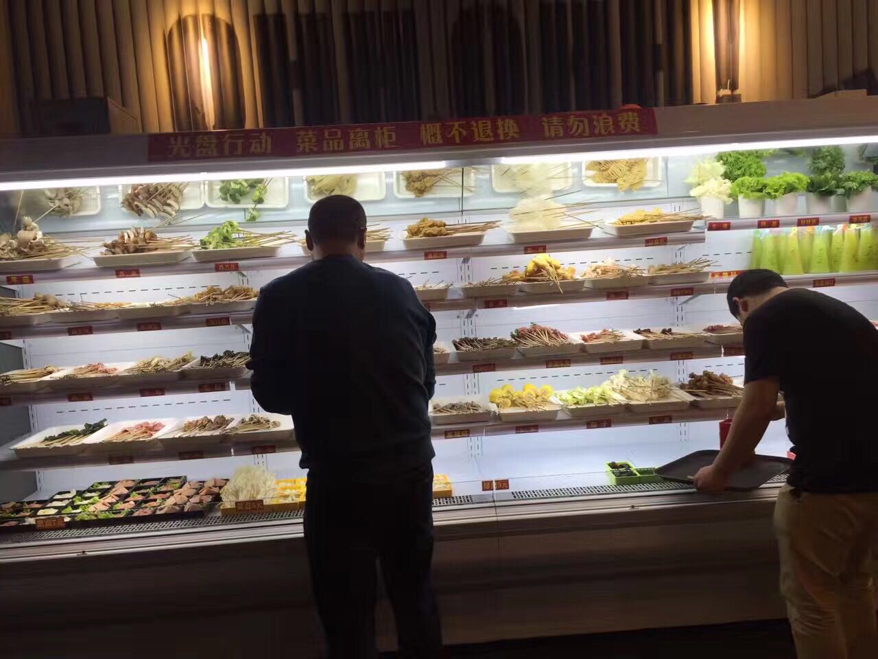 日常使用中導致風幕柜內(nèi)溫度過高的原因較多,可以從幾個方面來考慮。超市風幕柜周圍環(huán)境的因素,把風幕柜放在了陽光直射的地方,周圍環(huán)境很是擁擠,沒有留有空隙,導致周圍溫度過高,空氣循環(huán)流動性差,導致的傳熱效率低?;蚴秋L幕柜內(nèi)放得食物過多,過于擁擠,沒有留出足夠的空隙,導致柜內(nèi)空氣流動性差。風幕柜蒸發(fā)器表面結(jié)霜太厚,使冷量不能傳遞到箱內(nèi),影響制冷效果;冷凝器表面油污、灰塵太多,使冷凝器內(nèi)的高溫氣體無法與外界空氣進行熱量交換,不能充分液化,降低制冷量,造成風幕柜內(nèi)溫度偏高。