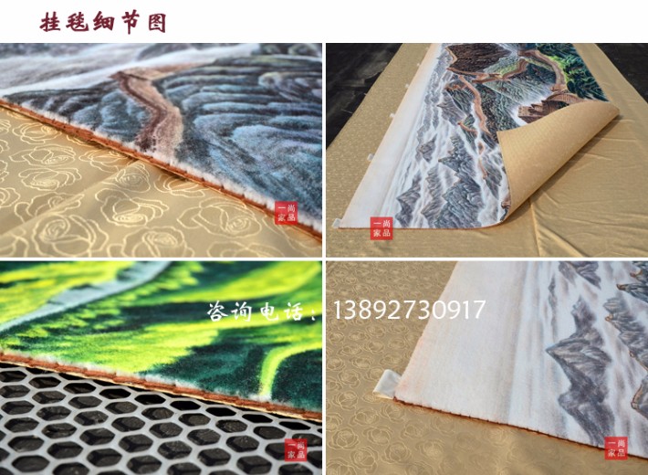 ,色彩逼真,典雅,久掛不掉色不變形,可水洗,毯面平坦