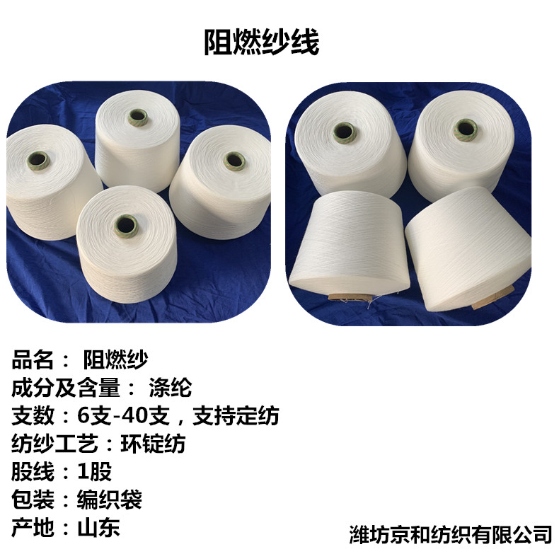 環(huán)錠紡21支阻燃紗 徐州阻燃滌綸紗 純滌紗 全滌紗 京和