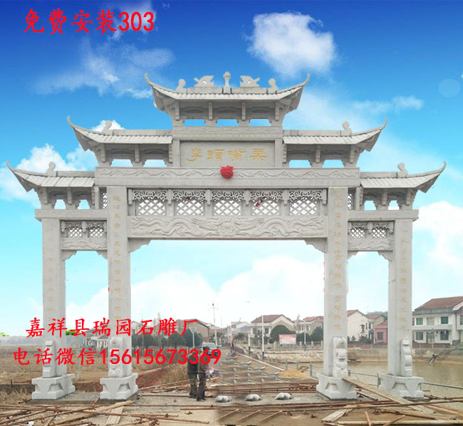 街道石牌坊,商城石牌門,石雕牌坊價格,村莊石雕牌門 |