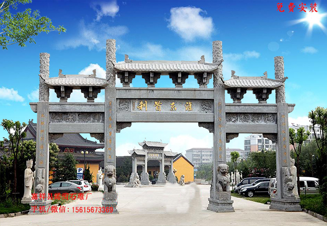 石雕牌坊的建立是對古牌坊文化的一種傳承,其建立不僅能夠保存古牌坊的建筑精髓還能夠在古牌坊的基礎(chǔ)上添加一些現(xiàn)代的元素,從而使得石雕牌坊能夠適應(yīng)現(xiàn)代的環(huán)境,石牌坊文化更好的流傳下去。街道口石牌坊 商城石牌門