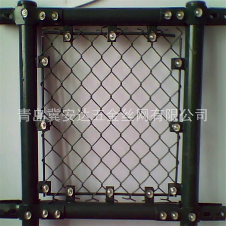 框架球場圍網(wǎng),在焊好邊框之后,將網(wǎng)片通過鋼筋和U型卡連接在一起,連接好之后,邊框兩周焊耳朵與75立柱連接,不僅安裝方便,而且牢固耐用,如果有一處出現(xiàn)問題,就可以拆掉螺絲進(jìn)行更換。