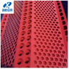 防風抑塵網(wǎng)是利用空氣動力學原理,按照實施現(xiàn)場環(huán)境風洞實驗結果加工成一定幾何形狀、開孔率和不同孔形組合擋風抑塵墻,使流通的空氣(強風)從外通過墻體時,在墻體內(nèi)側形成上、下干擾的氣流以達到外側強風,內(nèi)側弱風,外側小風,內(nèi)側無風的效果,從而防止粉塵的飛揚。